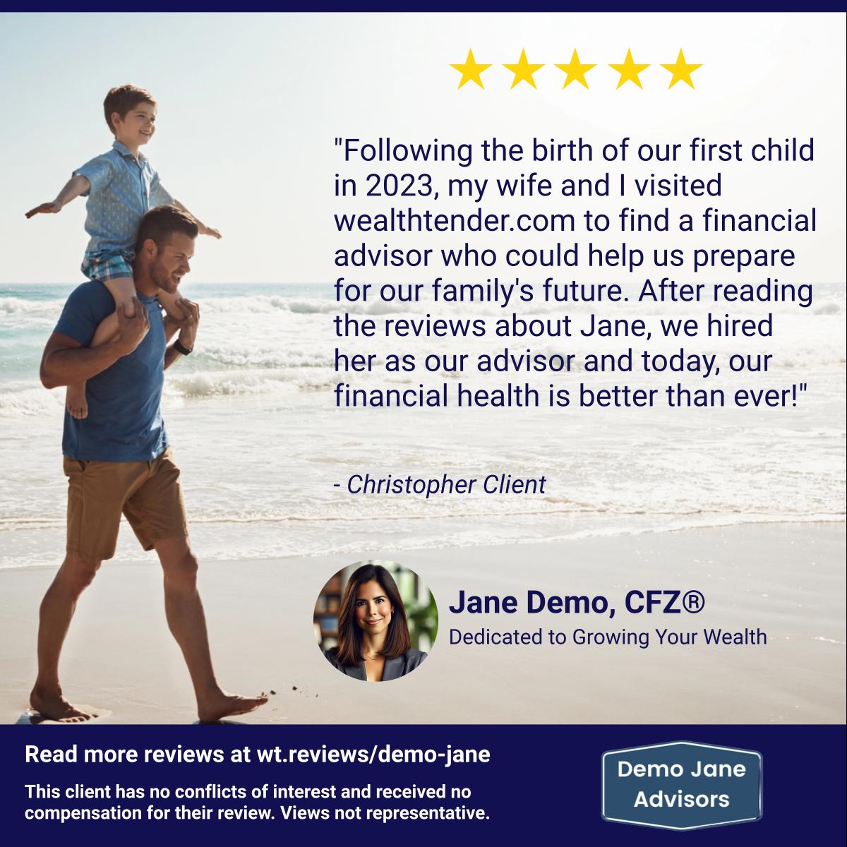 Barefoot on the beach at dawn as the sun rises towards the sky, your client breathes in the fresh ocean air and reflects on their gratitude for family, friends, and their financial advisor who is helping them makes moments like this a reality. Share their story about how they feel working with you in this design so others interested in hiring you can feel inspired to follow in their footsteps.