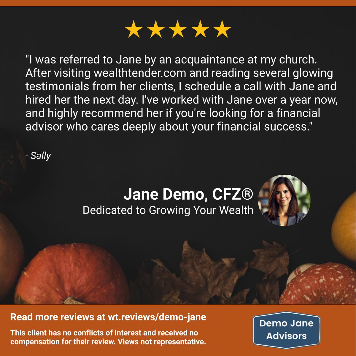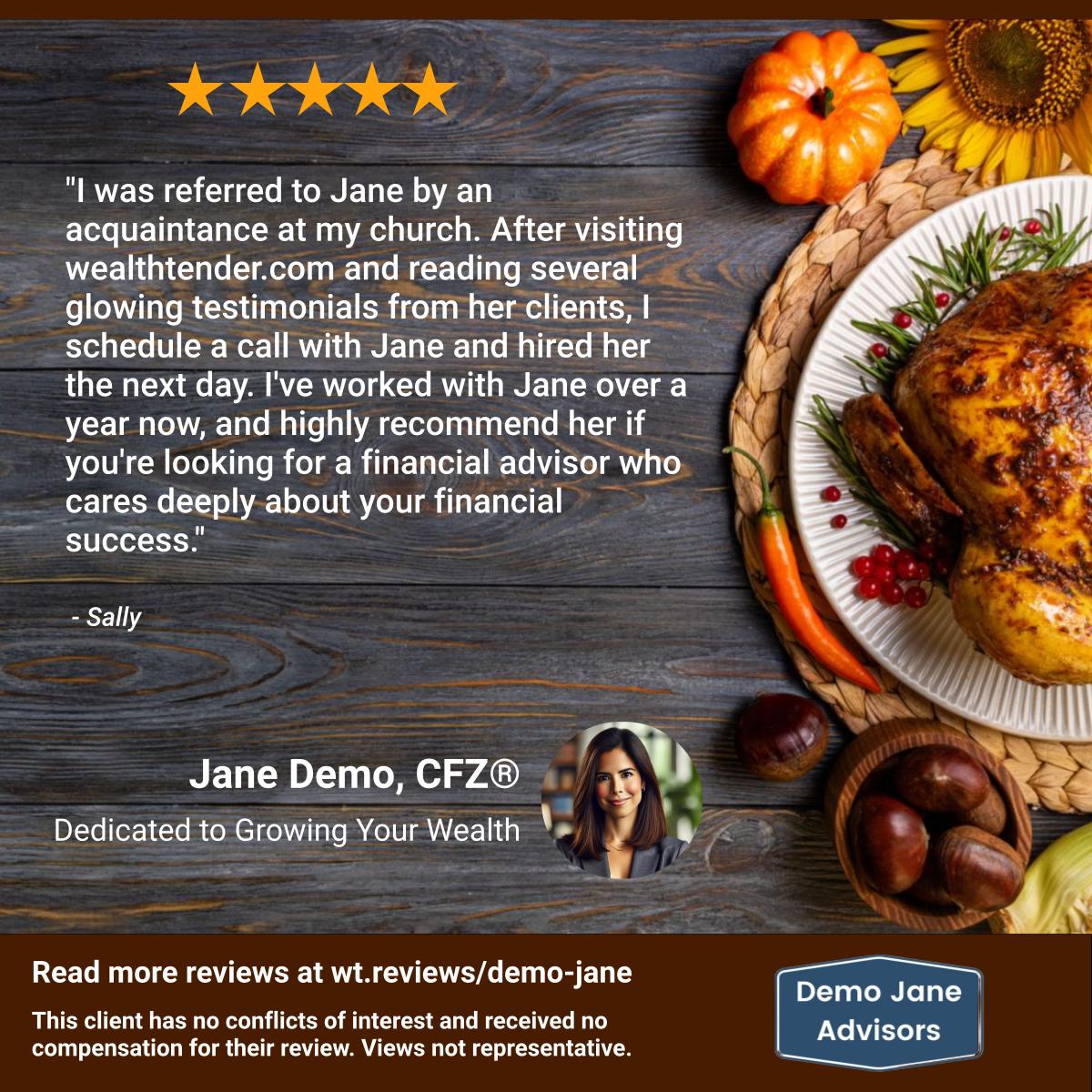 As Thanksgiving nears, create a social post expressing gratitude for your clients while sharing why your clients are thankful they chose you as their financial advisor.